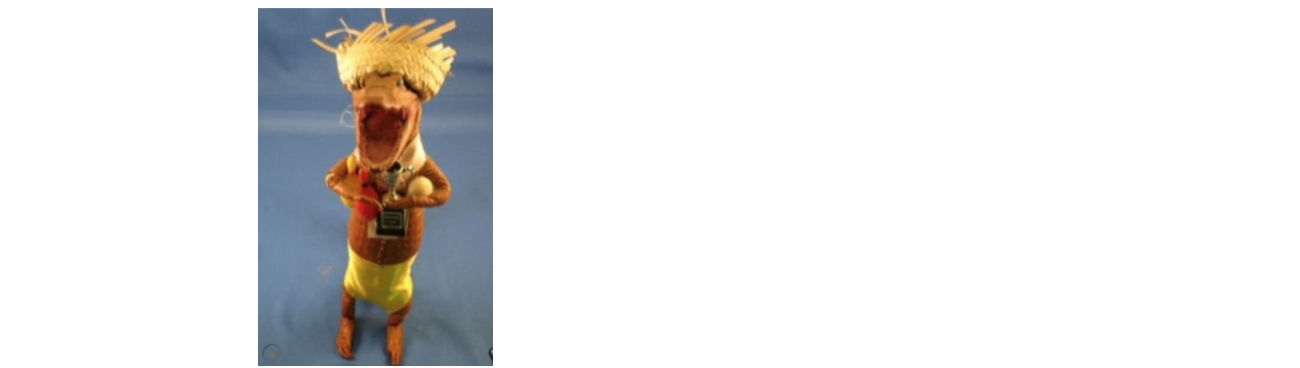 rather terrifying, except for its wardrobe of tropical shirt and straw hat.